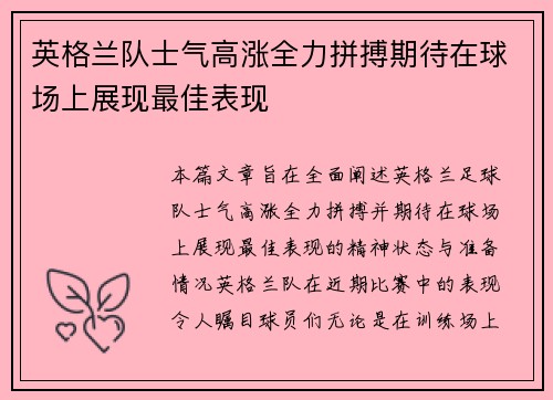 英格兰队士气高涨全力拼搏期待在球场上展现最佳表现