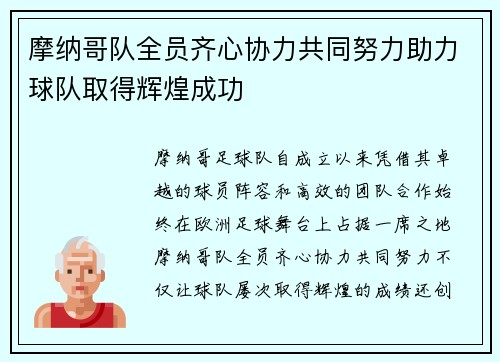 摩纳哥队全员齐心协力共同努力助力球队取得辉煌成功