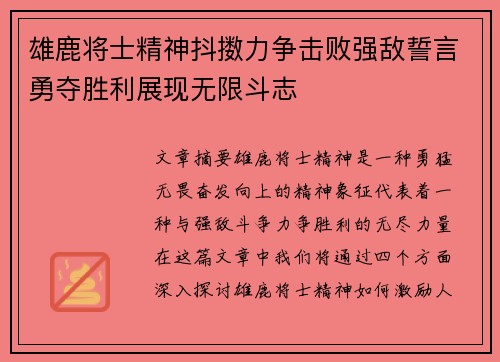 雄鹿将士精神抖擞力争击败强敌誓言勇夺胜利展现无限斗志