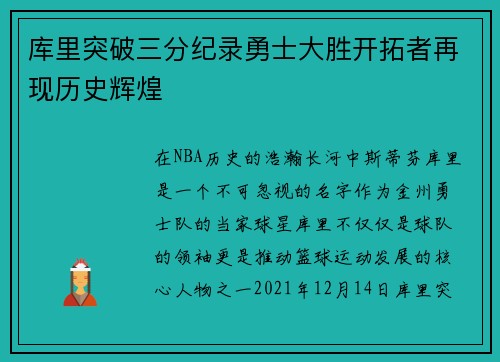库里突破三分纪录勇士大胜开拓者再现历史辉煌