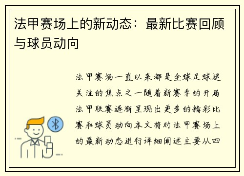 法甲赛场上的新动态:最新比赛回顾与球员动向