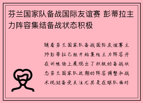芬兰国家队备战国际友谊赛 彭蒂拉主力阵容集结备战状态积极