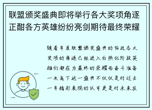 联盟颁奖盛典即将举行各大奖项角逐正酣各方英雄纷纷亮剑期待最终荣耀之争