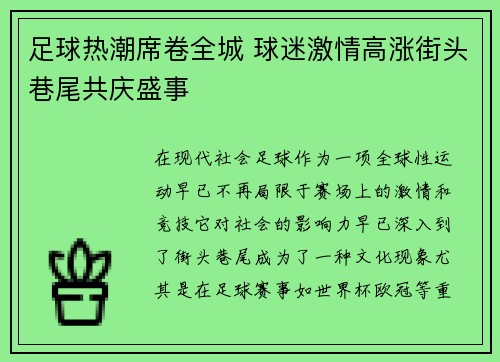 足球热潮席卷全城 球迷激情高涨街头巷尾共庆盛事