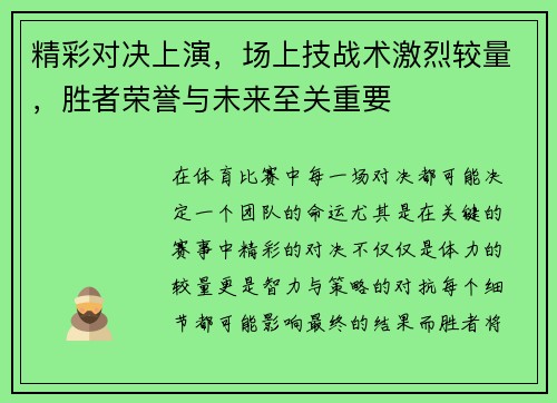 精彩对决上演,场上技战术激烈较量,胜者荣誉与未来至关重要