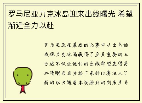 罗马尼亚力克冰岛迎来出线曙光 希望渐近全力以赴
