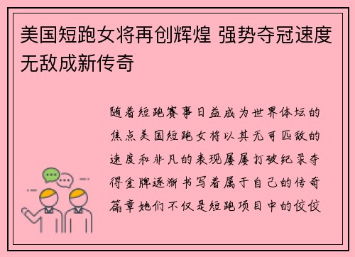 美国短跑女将再创辉煌 强势夺冠速度无敌成新传奇