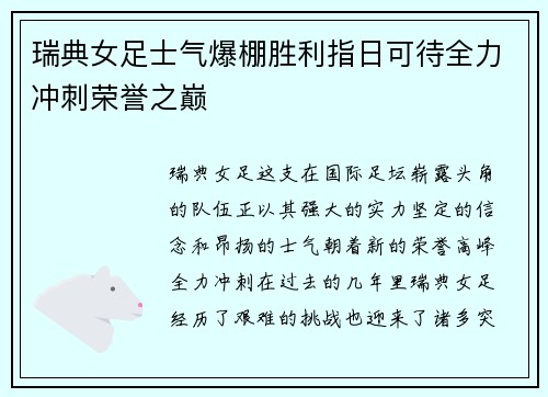 瑞典女足士气爆棚胜利指日可待全力冲刺荣誉之巅
