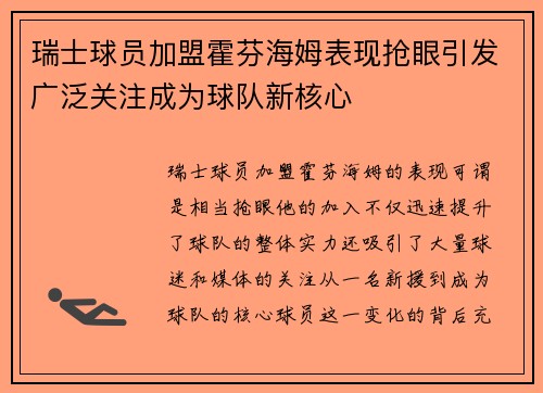 瑞士球员加盟霍芬海姆表现抢眼引发广泛关注成为球队新核心