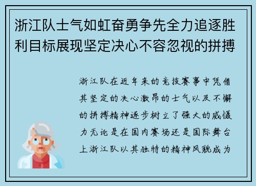 浙江队士气如虹奋勇争先全力追逐胜利目标展现坚定决心不容忽视的拼搏精神