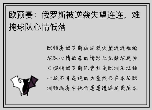欧预赛:俄罗斯被逆袭失望连连,难掩球队心情低落