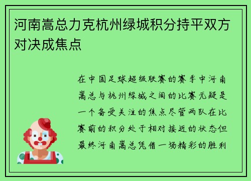 河南嵩总力克杭州绿城积分持平双方对决成焦点