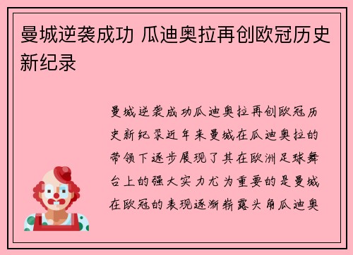 曼城逆袭成功 瓜迪奥拉再创欧冠历史新纪录
