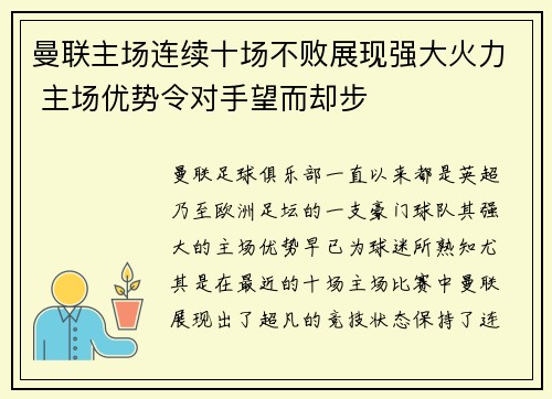曼联主场连续十场不败展现强大火力 主场优势令对手望而却步