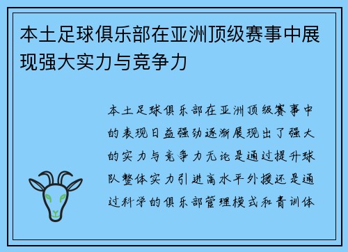 本土足球俱乐部在亚洲顶级赛事中展现强大实力与竞争力