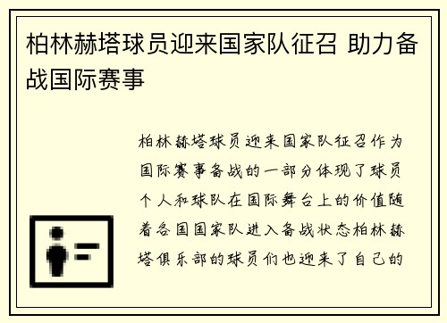 柏林赫塔球员迎来国家队征召 助力备战国际赛事