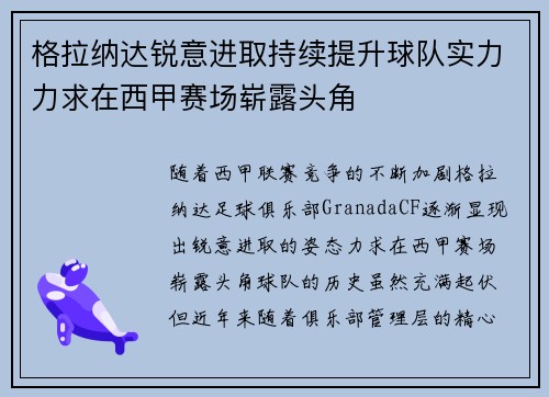 格拉纳达锐意进取持续提升球队实力力求在西甲赛场崭露头角