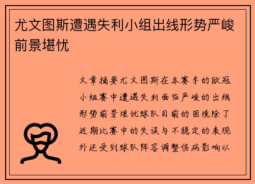 尤文图斯遭遇失利小组出线形势严峻前景堪忧