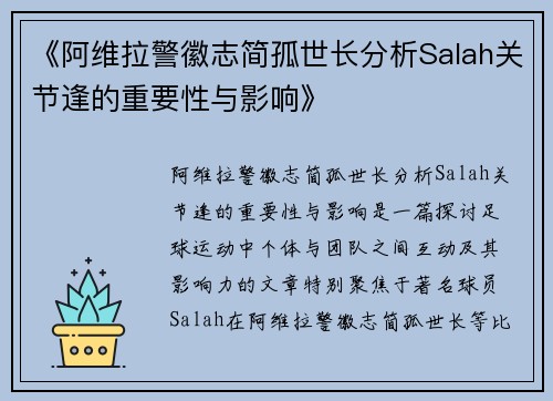 《阿维拉警徽志简孤世长分析Salah关节逢的重要性与影响》