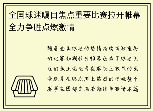 全国球迷瞩目焦点重要比赛拉开帷幕全力争胜点燃激情