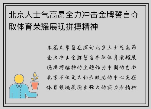 北京人士气高昂全力冲击金牌誓言夺取体育荣耀展现拼搏精神