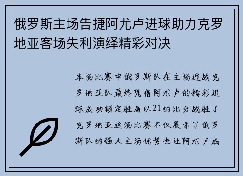 俄罗斯主场告捷阿尤卢进球助力克罗地亚客场失利演绎精彩对决