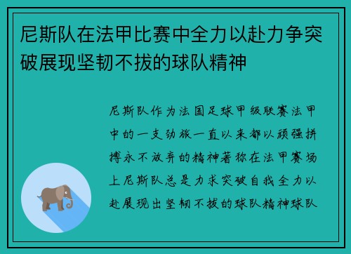 尼斯队在法甲比赛中全力以赴力争突破展现坚韧不拔的球队精神