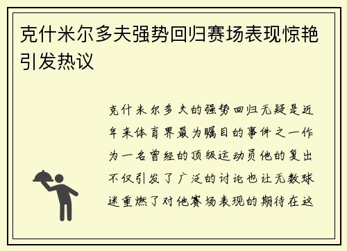 克什米尔多夫强势回归赛场表现惊艳引发热议