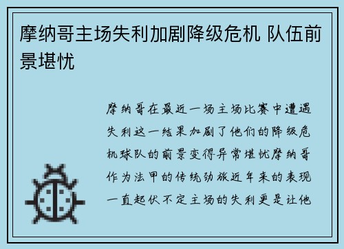 摩纳哥主场失利加剧降级危机 队伍前景堪忧