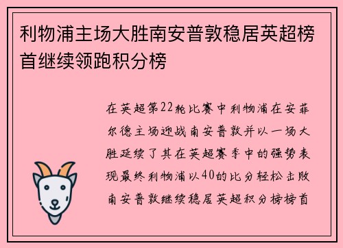 利物浦主场大胜南安普敦稳居英超榜首继续领跑积分榜