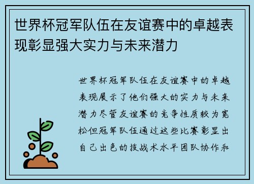 世界杯冠军队伍在友谊赛中的卓越表现彰显强大实力与未来潜力