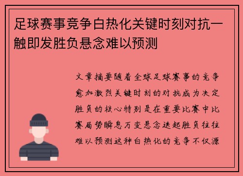 足球赛事竞争白热化关键时刻对抗一触即发胜负悬念难以预测