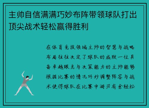 主帅自信满满巧妙布阵带领球队打出顶尖战术轻松赢得胜利