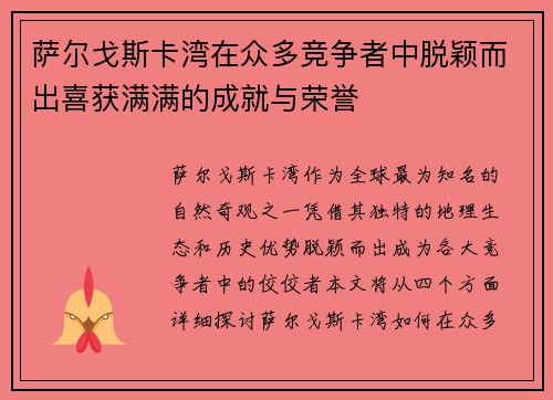 萨尔戈斯卡湾在众多竞争者中脱颖而出喜获满满的成就与荣誉