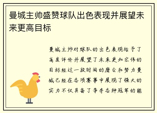 曼城主帅盛赞球队出色表现并展望未来更高目标
