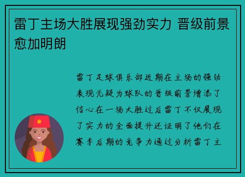 雷丁主场大胜展现强劲实力 晋级前景愈加明朗