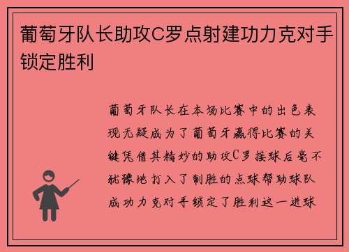 葡萄牙队长助攻C罗点射建功力克对手锁定胜利