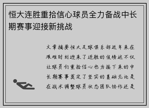 恒大连胜重拾信心球员全力备战中长期赛事迎接新挑战