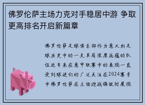 佛罗伦萨主场力克对手稳居中游 争取更高排名开启新篇章
