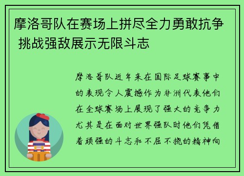 摩洛哥队在赛场上拼尽全力勇敢抗争 挑战强敌展示无限斗志