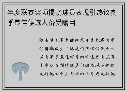 年度联赛奖项揭晓球员表现引热议赛季最佳候选人备受瞩目